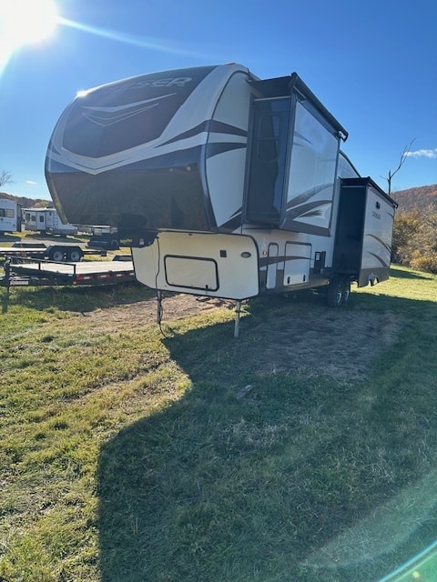 Experience residential-style living on the road with this beautifully maintained pre-owned fifth wheel, offering exceptional comfort, functionality, and a host of desirable upgrades. Designed with three expansive slideouts, each protected by awning covers, this coach provides an open and inviting interior that’s perfect for extended stays or full-time RV living.