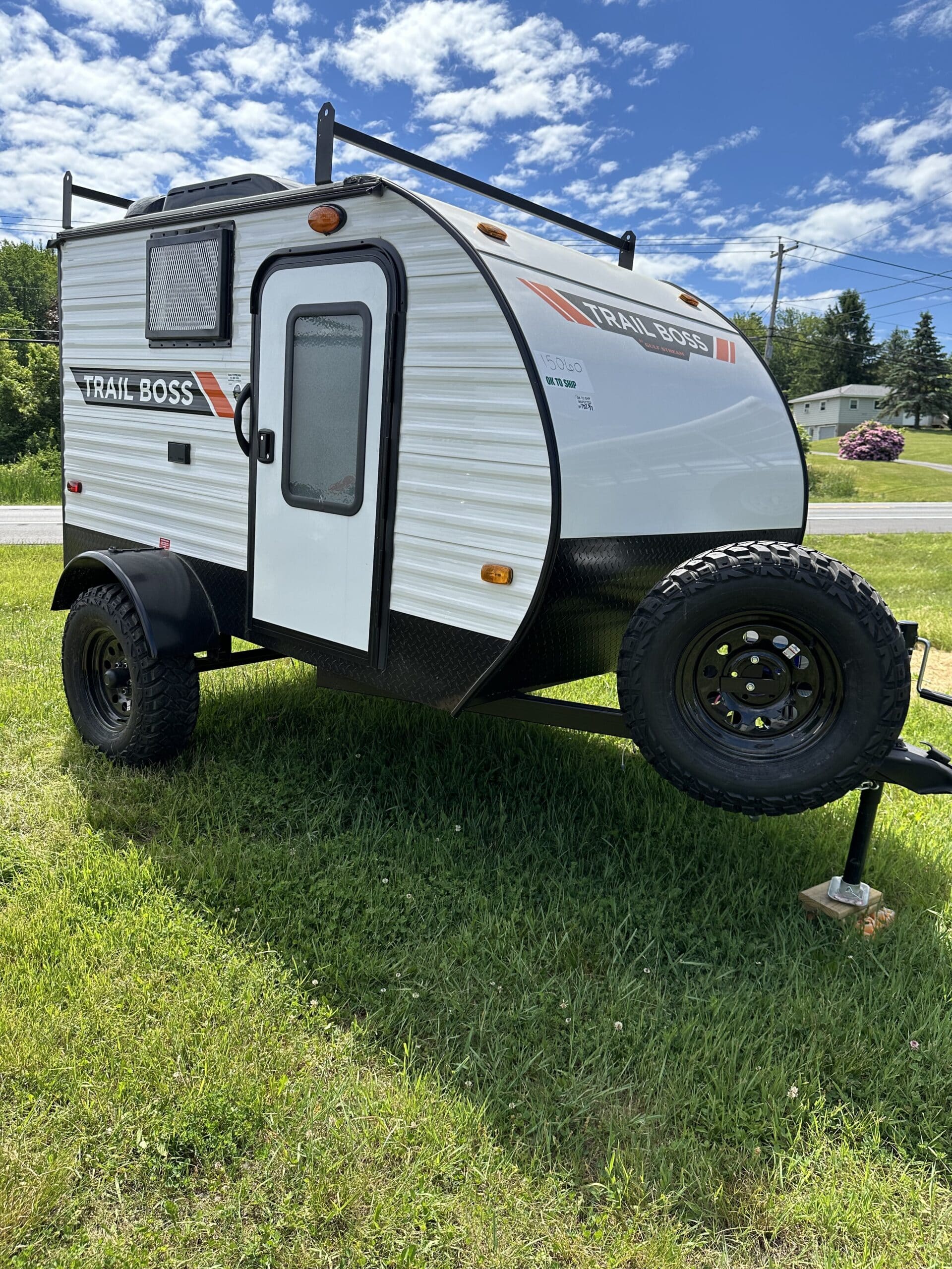 Escape the ordinary and embrace the extraordinary with the Trail Boss 140BH All-Terrain Minimalist Trailer – your perfect companion for the ultimate outdoor adventure! Designed to handle any conditions while ensuring maximum comfort, this trailer is your ticket to solitude in the heart of nature. Featuring a rear door entry, RV (Gas/Electric) Refrigerator, air conditioning, versatile bunk beds for sleeping or extra storage, bathroom with separate toilet/shower, ample storage and a roof-mounted solar panel the 140BH offers all the amenities you’ll need while facing anything that mother-nature throws at you.