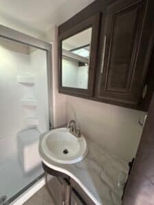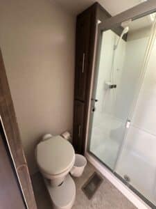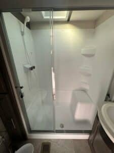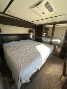 In the bath, you’ll find an oversized shower stall and generous storage options, while the private front bedroom offers a huge wardrobe closet with washer/dryer prep, giving you the flexibility for longer journeys.