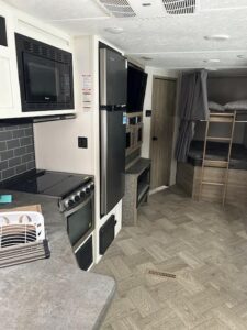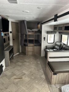 The 2022 Palomino Puma 28DBFQ is a spacious, family-friendly travel trailer designed for comfort and durability, sleeping up to 8 with a private front queen bedroom, double-over-double bunk beds, and convertible dinette and sofa. Inside, you’ll find a fully equipped kitchen with a 3-burner range, oven, microwave, large refrigerator, deep undermount sink, a full bathroom with roomy shower, 80" interior height, LED lighting, USB charging ports, and climate control with a 13,500 BTU A/C and 35,000 BTU furnace. Built for adventure, it features a durable powder-coated frame, AlphaPly roof membrane, enclosed underbelly, Super Lube axles, dual entry doors, pass-through storage, solar and backup camera prep, and a large power awning with LED lighting. Measuring approximately 32' 10" with a GVWR around 8,500 lbs and a 43-gallon fresh water capacity, the Puma 28DBFQ offers the ideal blend of space, functionality, and reliability for unforgettable family getaways.