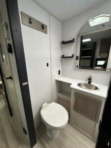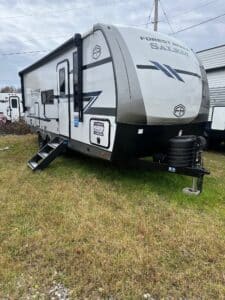 Make every trip your best trip—begin your RV lifestyle with comfort, style and ease. Step into the 22RKHL and you’ll discover a thoughtful blend of comfort, convenience and modern design: Rear-kitchen layout with abundant overhead storage and an extra-deep pantry—ideal for bringing along all your supplies and snacks. Slide-out living area plus panoramic windows on both sides of the campsite let in light and views, expanding the feel of the space. Private front bedroom with a walk-around RV queen bed (or Versa-Tilt mechanism) so you can enjoy real comfort at night. Full walk-in shower with skylight, porcelain toilet and elegant finishes—bringing a residential feel to your campsite bathroom. Outside kitchen (with refrigerator, griddle and spray-port) under a generous 16′ awning—perfect for cooking outdoors, entertaining or just relaxing in shade. Massive “Texas-size” pass-through storage and large baggage doors on both sides—so you can bring gear, toys, linens, whatever you need. Tow-friendly engineering: laminated “Aluma Frame” sidewalls & floor with block-foam insulation, wide stance axle, Maxxis/Goodyear radial tires and a 2″ accessory hitch receiver so you can haul a bike rack or gear. Smart extras: Prepped for roof-mounted solar, outside shower with hot & cold, shaded pet-tether/security hook, tankless water heater and built-in shades with thermal foil backing. Start right. The Hemisphere 22RKHL gives you all the upscale features you’ve dreamed of—without going overboard.