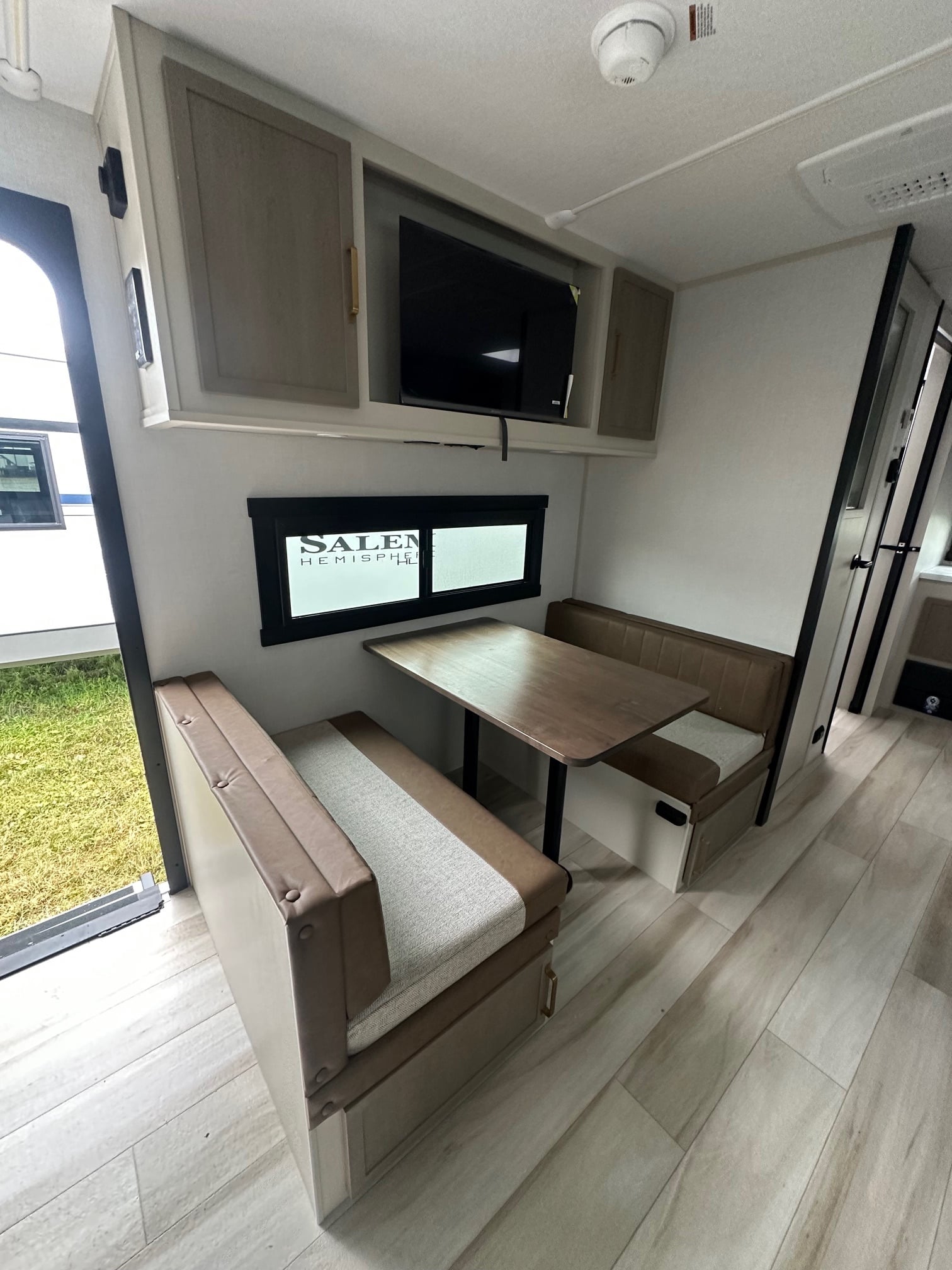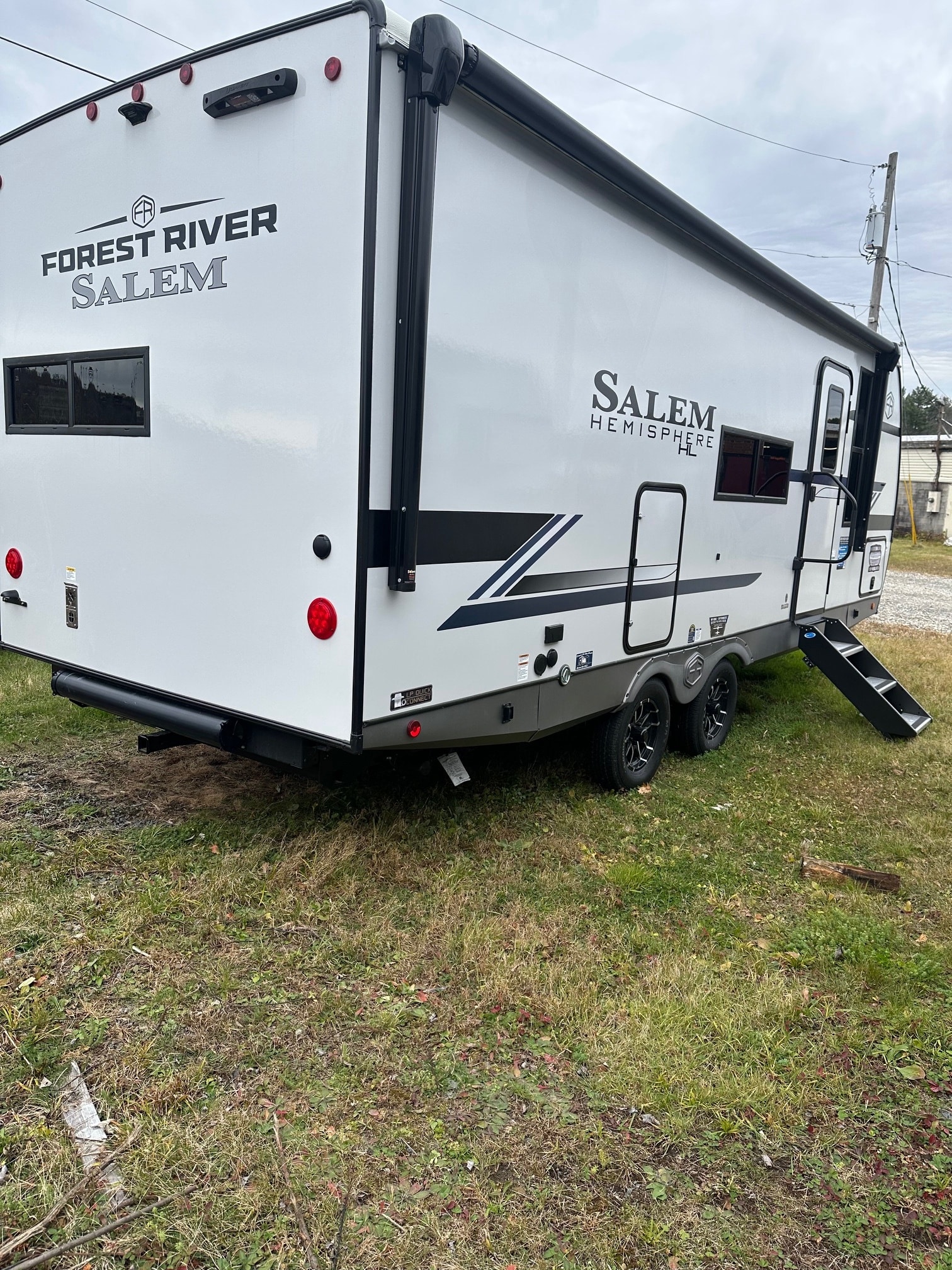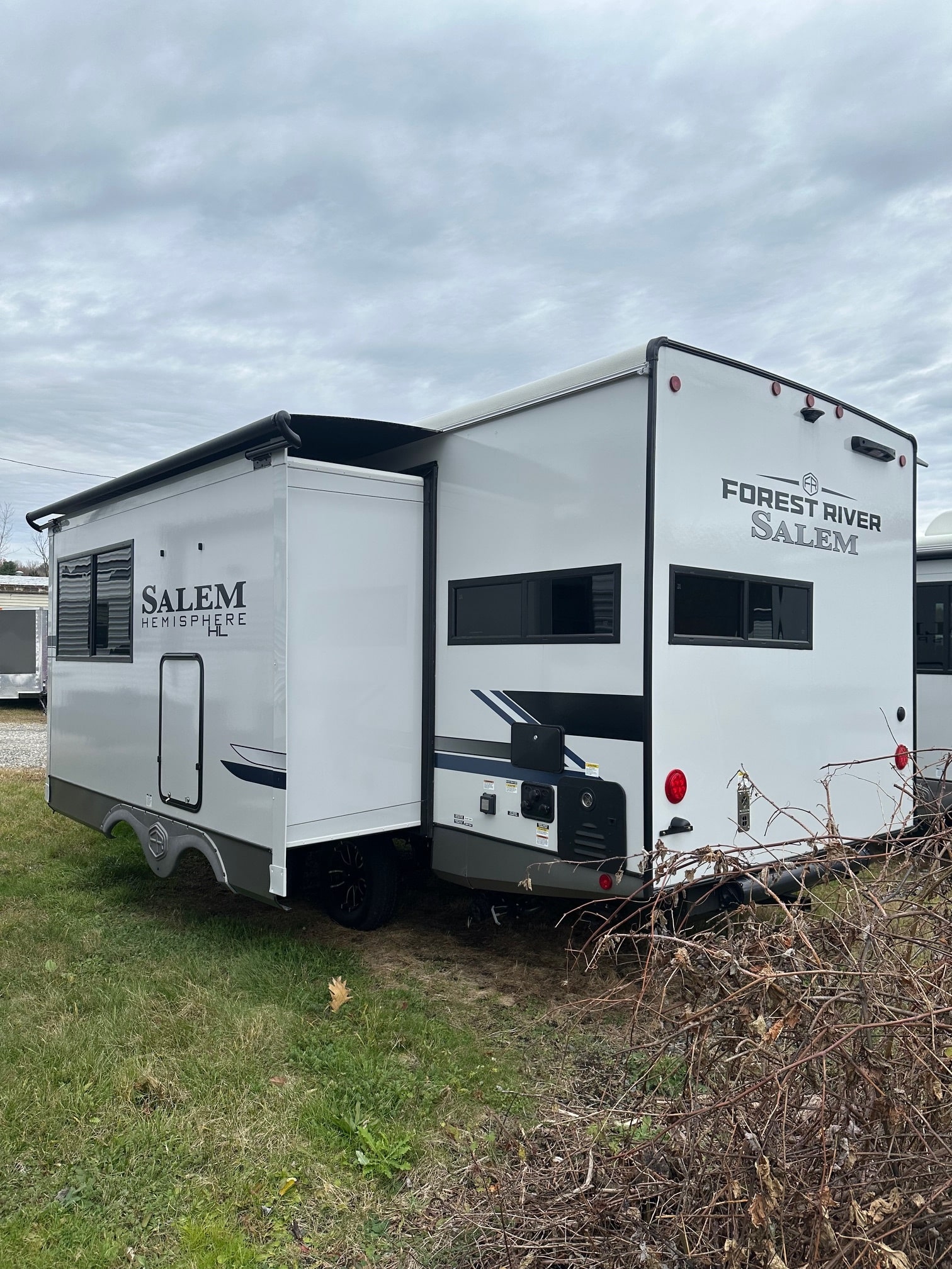 Make every trip your best trip—begin your RV lifestyle with comfort, style and ease. Step into the 22RKHL and you’ll discover a thoughtful blend of comfort, convenience and modern design: Rear-kitchen layout with abundant overhead storage and an extra-deep pantry—ideal for bringing along all your supplies and snacks. Slide-out living area plus panoramic windows on both sides of the campsite let in light and views, expanding the feel of the space. Private front bedroom with a walk-around RV queen bed (or Versa-Tilt mechanism) so you can enjoy real comfort at night. Full walk-in shower with skylight, porcelain toilet and elegant finishes—bringing a residential feel to your campsite bathroom. Outside kitchen (with refrigerator, griddle and spray-port) under a generous 16′ awning—perfect for cooking outdoors, entertaining or just relaxing in shade. Massive “Texas-size” pass-through storage and large baggage doors on both sides—so you can bring gear, toys, linens, whatever you need. Tow-friendly engineering: laminated “Aluma Frame” sidewalls & floor with block-foam insulation, wide stance axle, Maxxis/Goodyear radial tires and a 2″ accessory hitch receiver so you can haul a bike rack or gear. Smart extras: Prepped for roof-mounted solar, outside shower with hot & cold, shaded pet-tether/security hook, tankless water heater and built-in shades with thermal foil backing. Start right. The Hemisphere 22RKHL gives you all the upscale features you’ve dreamed of—without going overboard.