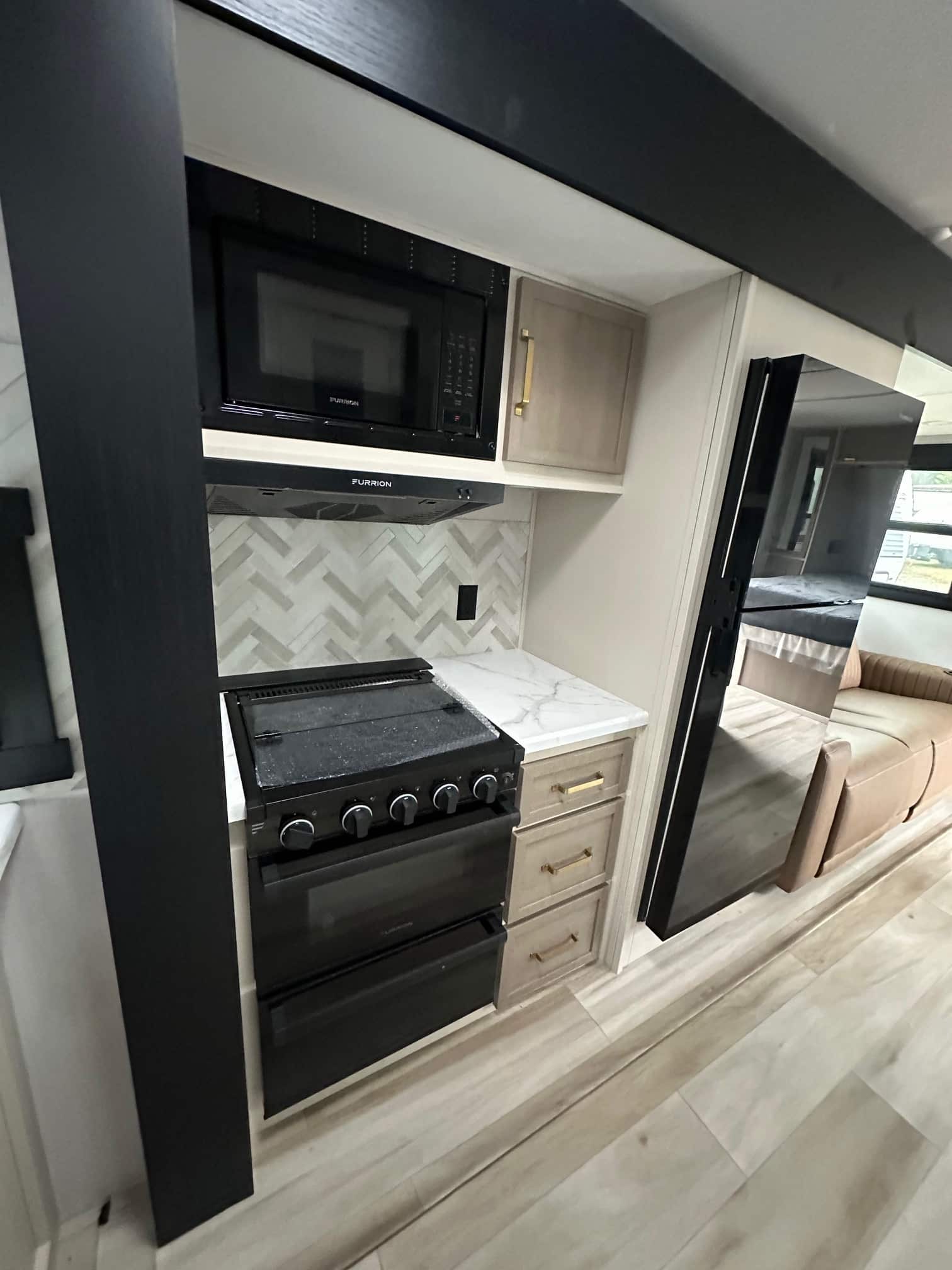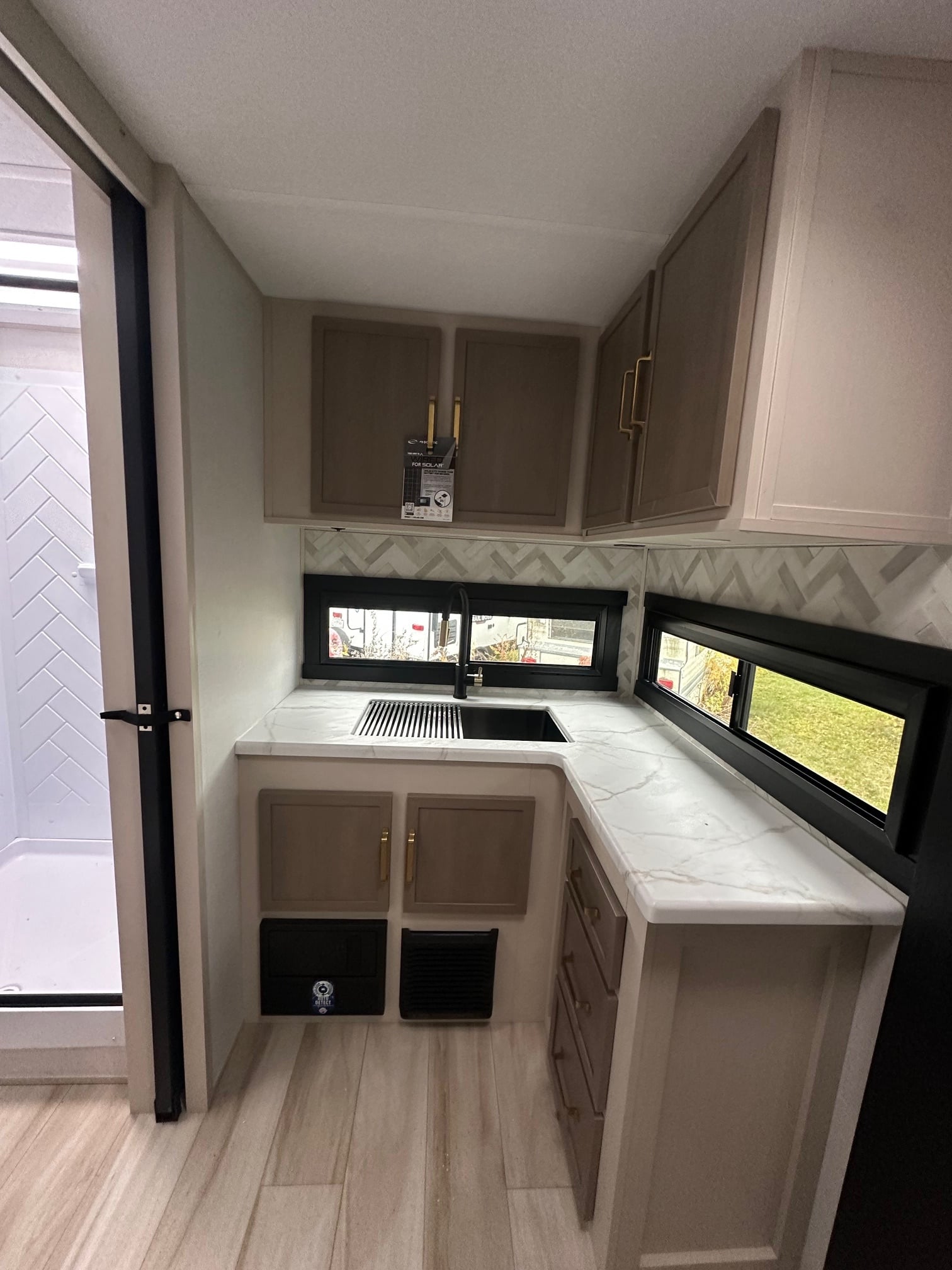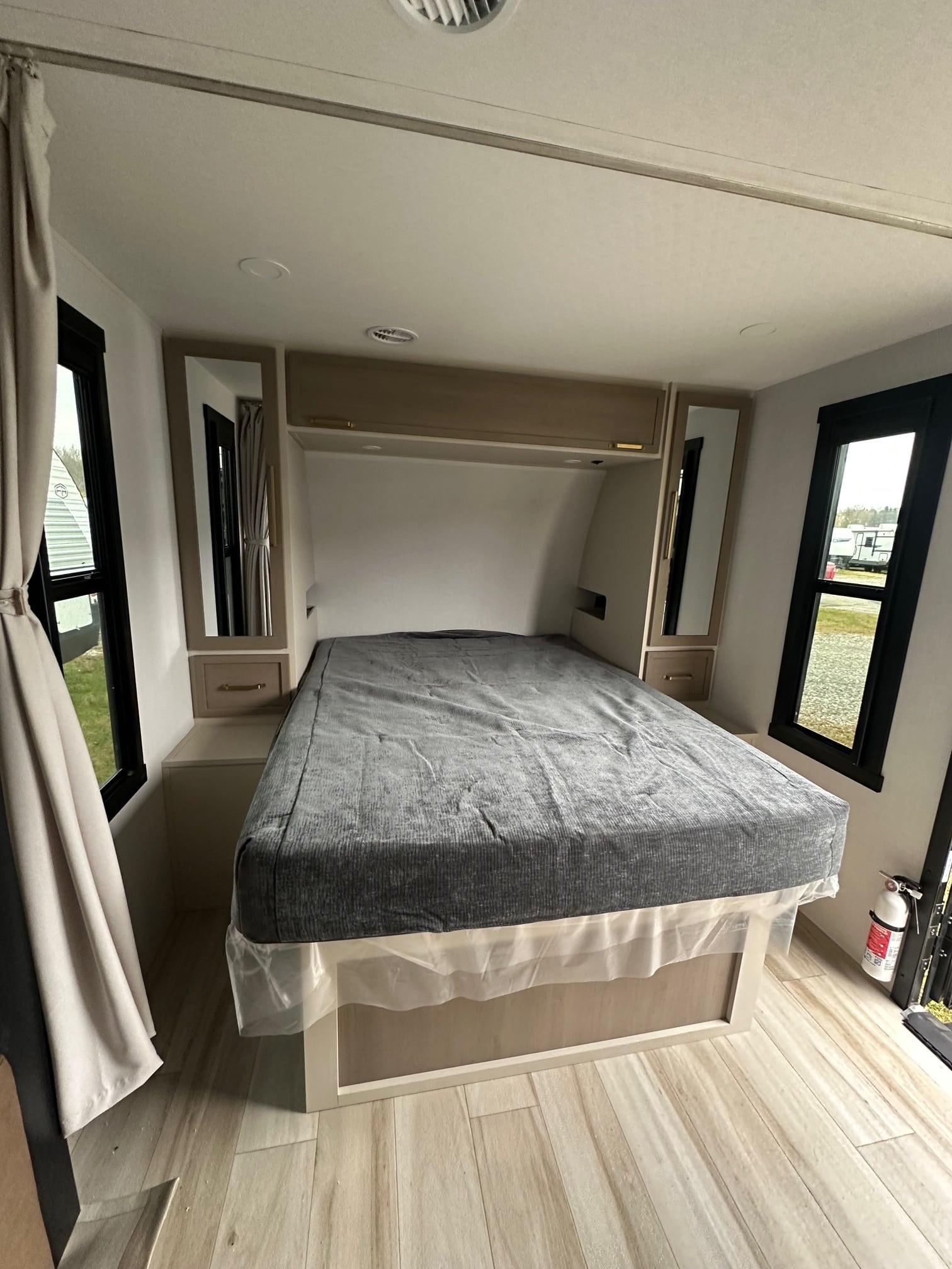 Make every trip your best trip—begin your RV lifestyle with comfort, style and ease. Step into the 22RKHL and you’ll discover a thoughtful blend of comfort, convenience and modern design: Rear-kitchen layout with abundant overhead storage and an extra-deep pantry—ideal for bringing along all your supplies and snacks. Slide-out living area plus panoramic windows on both sides of the campsite let in light and views, expanding the feel of the space. Private front bedroom with a walk-around RV queen bed (or Versa-Tilt mechanism) so you can enjoy real comfort at night. Full walk-in shower with skylight, porcelain toilet and elegant finishes—bringing a residential feel to your campsite bathroom. Outside kitchen (with refrigerator, griddle and spray-port) under a generous 16′ awning—perfect for cooking outdoors, entertaining or just relaxing in shade. Massive “Texas-size” pass-through storage and large baggage doors on both sides—so you can bring gear, toys, linens, whatever you need. Tow-friendly engineering: laminated “Aluma Frame” sidewalls & floor with block-foam insulation, wide stance axle, Maxxis/Goodyear radial tires and a 2″ accessory hitch receiver so you can haul a bike rack or gear. Smart extras: Prepped for roof-mounted solar, outside shower with hot & cold, shaded pet-tether/security hook, tankless water heater and built-in shades with thermal foil backing. Start right. The Hemisphere 22RKHL gives you all the upscale features you’ve dreamed of—without going overboard.