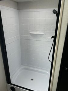 The spacious rear bath feels like a spa on wheels, featuring: