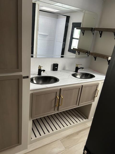 The spacious rear bath feels like a spa on wheels, featuring: