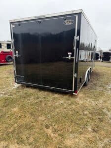 NOTABLE FEATURES: V-Front - Rear Ramp Door - 32" Side Door (Includes RV Lock and Bar Latch) - 0.080 Polycore Siding - 16" OC (Floor/Walls/Roof) - 84" Interior Height - Frame Upgrade (6") - 4-Way Electric Brakes - GVWR: 9990# / DRY WEIGHT: 3200# / PAYLOAD: 6790#