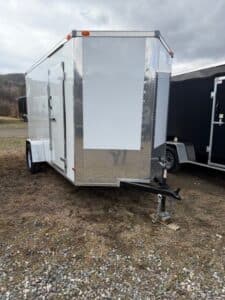 NOTABLE FEATURES: V-Nose - Ramp Door - 78" Interior Height - 32" Side Door - .080 Polycore Siding - 16" OC (Walls, Floor, Roof) / GVWR: 2990# / DRY WEIGHT: 1350# / PAYLOAD: 1640#