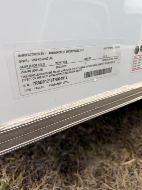 NOTABLE FEATURES: V-Nose - Ramp Door - 78" Interior Height - 32" Side Door - .080 Polycore Siding - 16" OC (Walls, Floor, Roof) / GVWR: 2990# / DRY WEIGHT: 1350# / PAYLOAD: 1640#