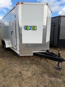Notable Features: V-Nose - Rear Ramp Door - 32" Side Door - 84" Interior Height - .080 Polycore Siding - 1 Piece Roof - 16" OC (Walls, Floor, Roof) - Roof Vent - Rear Outside Docking/Loading Light - Electric Brakes - Triple Tube Extended Tongue - GVWR: 7000# / DRY WEIGHT: 2800# / PAYLOAD: 4200#