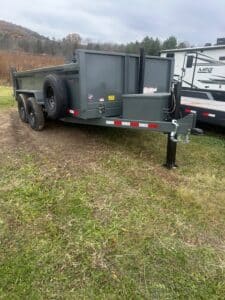 Experience the epitome of style and functionality with our 7x14 Dump Trailer in Sleek Slate Gray, designed to command attention while tackling the toughest loads with ease! Built to handle heavy loads, this trailer combines style with resilience, offering durability and performance in every task. The 7x14 dimensions strike the perfect balance between spacious capacity and maneuverability, catering to various hauling needs.